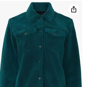 Chic and cozy teddy jacket. Perfect for cool weather. Features button closure and chest pockets.