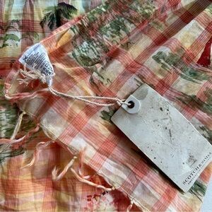 Check plaid with beach scene and palm trees