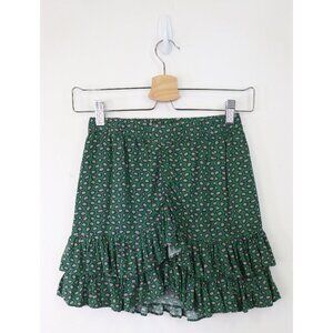 Scotch & Soda Ruffled Skirt Tiered Abstract Animal Print Mini in Green, Navy, Beige. Size 10.