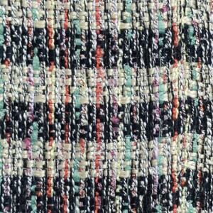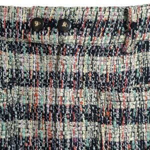 ▪️ Additional Details: Short skirt. Made from multi-colored tweed. Adorned by a striped motif. Decorative buttons. Belt loops on the waist. Large front pockets. Contemporary take on a classic style. Button and zipper closure.