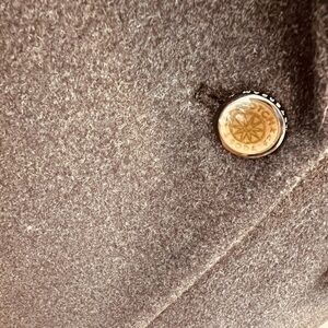 wool blend bouclé construction mélange effect notched lapels front button fastening long sleeves