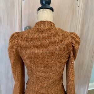 Scotch & Soda Smocked High Neck Top brown check gingham puff sleeve blouse FallS