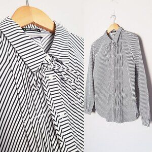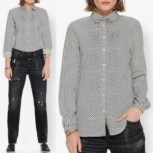 Gorgeous Scotch & Soda Bon Appetit pintuck black and white stripe button front blouse.