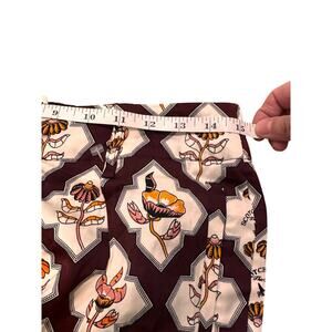 Scotch & Soda Sun Ray Satin Burgundy Floral Print Pleated Straight Leg Pants, S