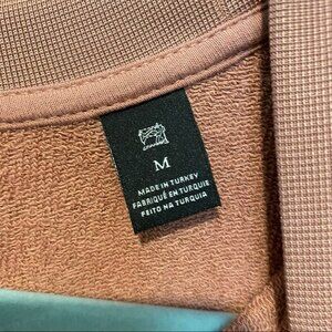 Features: long sleeves, crew neck, track stripe down the sleeves, cinched detail at the wrists, terry lining, soft and comfortable to wear