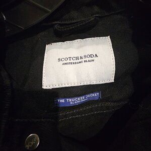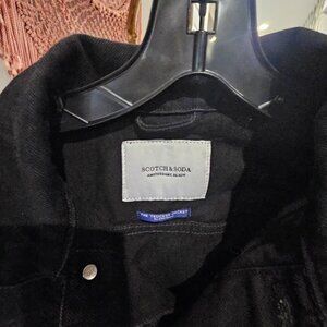 Scotch & Soda trucker jacket. Black denim jacket, pockets, buttons in the front, sleeves can be rolled up.