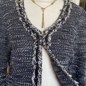 A wardrobe staple, this single-breasted tweed blazer has the versatility to be worn for formal occasions - or to be paired with jeans for a smart casual look. Featuring tape trims, with welt style pockets.