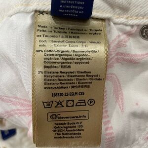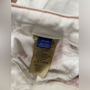 The Charm White denim jeans. Some stretch. Added pictures in blue from the website for fit. Inseam ~30