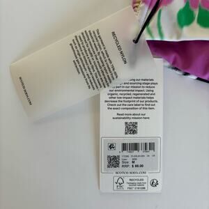 Features: Scotch & Soda White Multicolor Floral Print Halter Tie Bandeau Bikini Top; ruched middle, self tie in a halter style, back clasp closure.