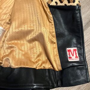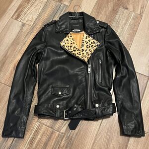Scotch & Soda Womens Black Leather & Leopard Trim Biker Jacket NWOT Small