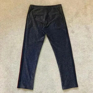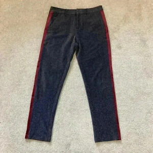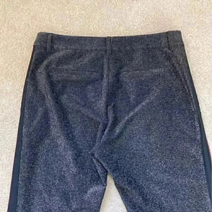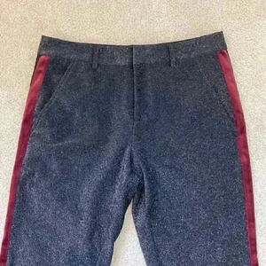 Scotch & Soda high rise stretchy Lurex Pants with Velvet Trim. These are the atelier no 3 pants. They are black with red wine velvet trim on the side. These pants have metallic threads throughout. In size small. Has some minor signs of thread wear, some metallic threads have gotten loose.