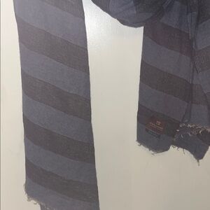 Elevate your style with this sophisticated men's striped scarf. Featuring a classic blue & navy almost denim color design, it's perfect for any occasion. Stay warm and stylish. Frayed ends by design, smoke and pet free home. Freshly washed and air dried. Long scarf measures 82” inches length and 30” inches width. In good preowned condition. Light weight.