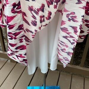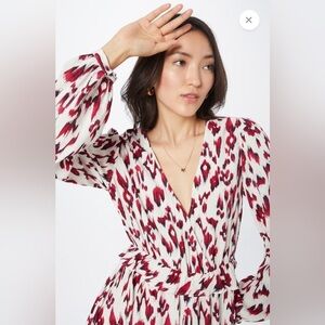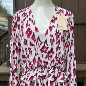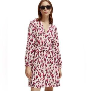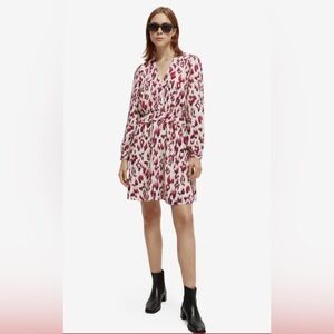 This mini dress features an eye-catching print with ruffling detailing at the waist. We've added a V-neck collar, long-sleeves, and fitted cuffs for a polished finish