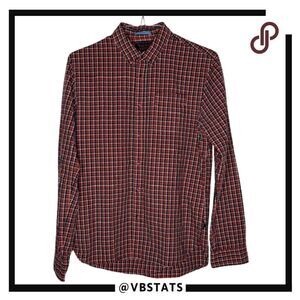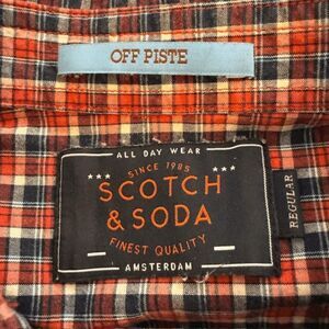 Scotch & Soda Men's Plaid Off Piste Button Down Shirt Orange Blue Size Large