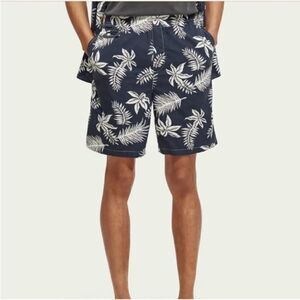 Scotch & Soda NWT Mens Relaxed Straight Print Poplin Bermuda Shorts Navy M