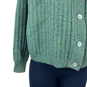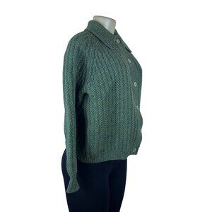 Scotch Wool Shop Women's Green Wool Button-Up Cardigan Sweater Long Sleeve Sz 38