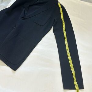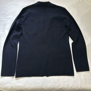 Welcome to comfort meets laidback luxury, this piece pairs effortlessly with jeans or business attire. Navy, two large front pockets & one chest pocket, two button closure, NWOT never worn, size small excellent condition.