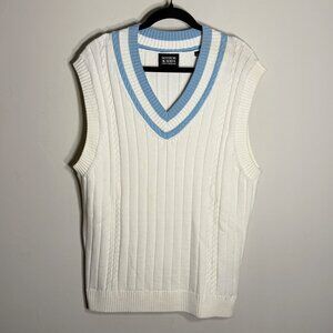 Classic, soft, and unquestionable - this sweater vest does it all. Rock the contrast-lined, cool V-neck and ask yourself: could I have done it any better?