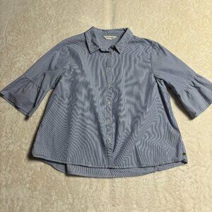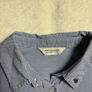 Scotch and Soda Womens Button Down Blouse Medium Nautical Blue Striped Sailor Quiet Luxury