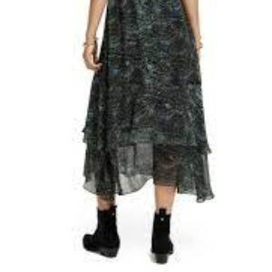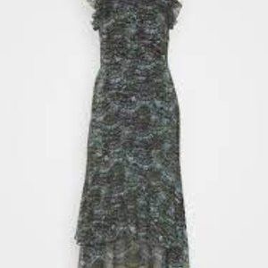 Available at Nordstrom for $258.00 https://www.nordstrom.com/s/flounce-tiered-chiffon-dress/7446970?color=FEATHER+BOTTLE+GREEN&size