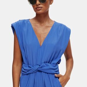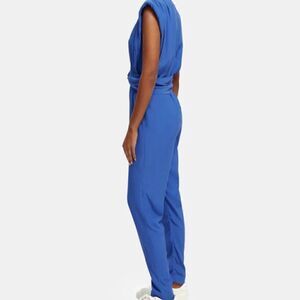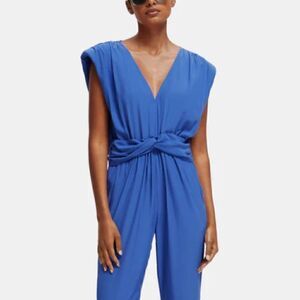 Sleeveless jumpsuit features a knotted belt detail at the waist. Finished with a v-neck, this polished look has pockets for a touch of utility. This garment is partially made of LENZING ECOVERO branded viscose fibers manufactured by Lenzing AG. An alternative to conventional viscose fibres, these fibres are produced using wood pulp from responsibly managed forests. Compared to conventional viscose, the manufacturing of this fiber is energy efficient and saves water. LENZING and ECOVERO are trademarks of Lenzing AG.