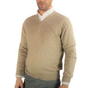 Scotland Cashmere 2-ply Sweater V-neck Pullover Sleeves Tan Men's Small Unisex