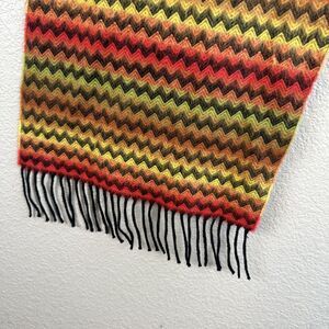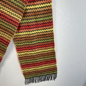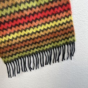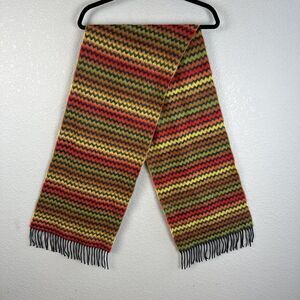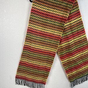 Scotland Rectangle Scarf 100% Cashmere Red Orange Yellow Tan Chevron Fringe Trim