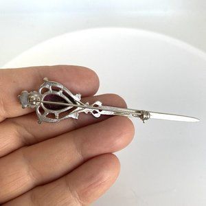Scotland Silvertone Large Purple Stone Kilt Shawl Pin Sword Crown
