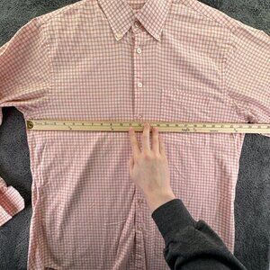 Scott Barber Button Up Shirt Orange White Check Large Cotton Long Sleeve Men