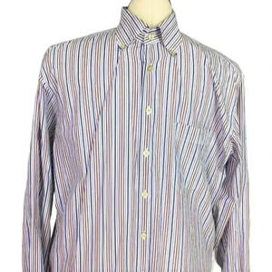 Scott Barber Mens L Striped Shirt Regular Fit Cotton Long Sleeve Pocket Multi