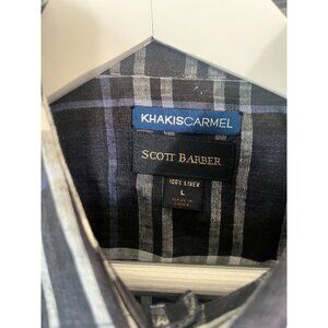 Scott Barber Mens Plaid Linen KhakisCarmel Button-Down Shirt Large Navy Casual
