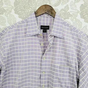 Scott Barber Mens XL Purple Plaid Cotton Button-Up Short Sleeve Shirt