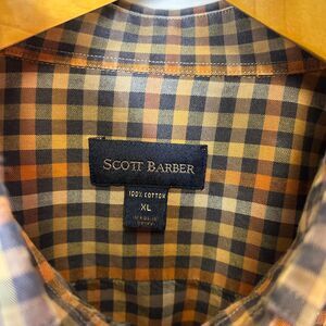 Scott Barber Orange White Navy Check Brushed Twill LS Button-Down Shirt Size XL