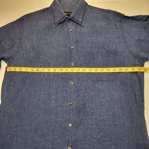 Scott Barber Vintage Men's Blue Linen Shirt with RicRac Trim