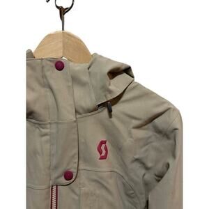 Scott Dryo snowboarding skiing jacket women's coat sz medium tan / brown and pink in EUC no flaws. Tons of zip pockets, underarm vents, adjustable hood and cuffs, warm lining, waterproof. Perfect for any winter outdoor sports!, hikes, or day to day use.