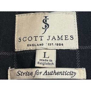 Scott James Black Plaid Flannel Faux Leather Flip Cuff Large England Modern Prep