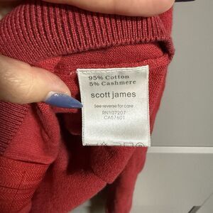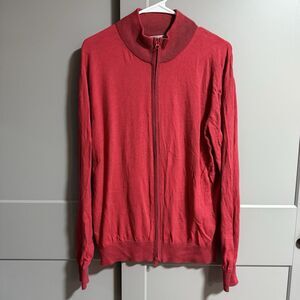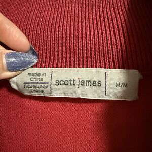Scott James Men Cotton/Cashmere Full Zip Knit Jacket Mock Neck Red Medium