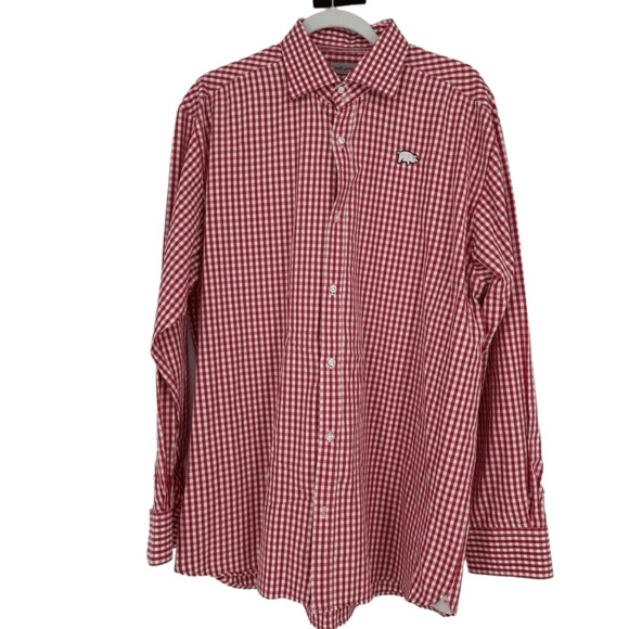 Scott James Mens Button Up Shirt Size XL Checkered Pig Patch Red White Preppy