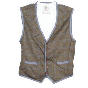 Scott James Tweed Checkered Waistcoat Vest Brown Size Large