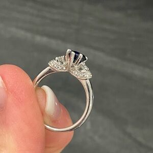 Gorgeous GIA certified with certificate 1.35 carat sapphire with .38 G-H VS & Si diamonds. Eye clean super sparkly. This is set in a Scott Kay Tiara Collection engagement band white gold 14K. I’ve worn it twice. In excellent like new condition. Scott Kay insignia on band hard to capture up close as tiny & I only have iPhone camera. It will be certified by Poshmark authenticity guarantee.
