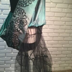 Scott McClintock Black velvet vintage green puffy formal holiday attire 4