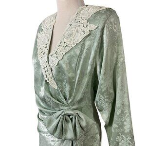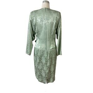 Scott McClintock Dress Green Damask Jacquard Lace Collar Size 10 Vintage 1980s