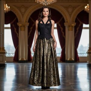 Scott McClintock Gradient Velvet Halter Black Gold Metallic Formal Evening Dress