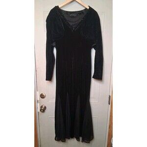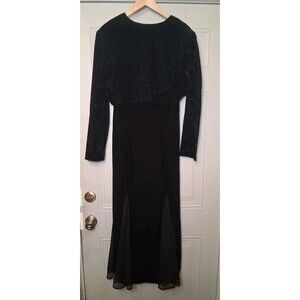 Scott McClintock Luxurious Plush Jet Black Velvet &Beads Maxi Dress & Jacket Set