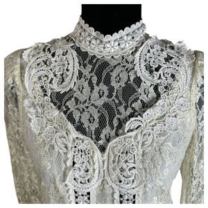 Scott McClintock Victorian Style Vintage Cream Lace Floral Long Sleeve Blouse Size 6