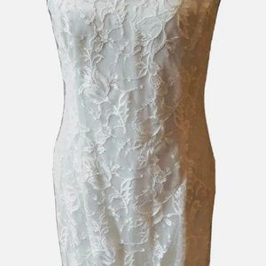 Scott McClintock Vintage Cream Floral Lace Long Prom Wedding Formal Dress