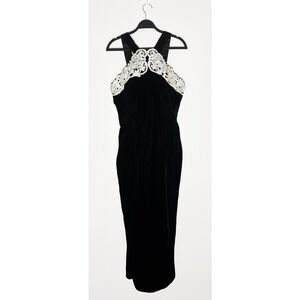 Scott McClintock Women's Vintage 90s Black Halter Maxi Velvet Dress Ivory Floral Applique