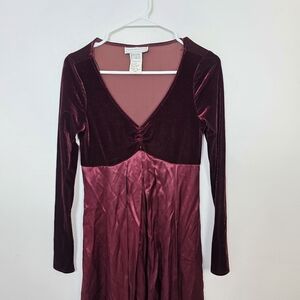 Scott Mcclintock Dark Red Velvet Satin Babydoll Long Sleeve Maxi Formal Dress 4