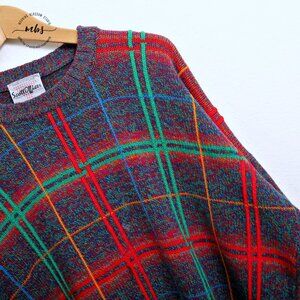 Scott Officer 100% Pure Wool Crew Neck Plaid Sweater