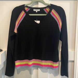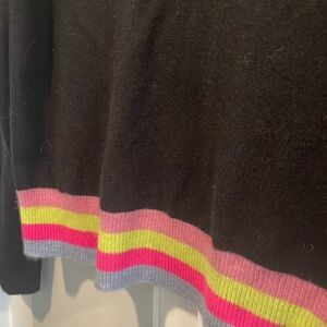 Scott and Scott London 100% Cashmere V-neck Sweater. New with tags. Black with neon stripes. Size small. Underarm to underarm 20”. Length 22”.